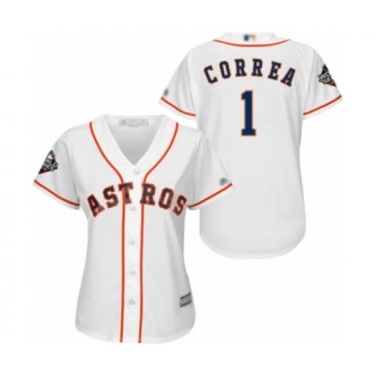 Women's Houston Astros #1 Carlos Correa Authentic White Home Cool Base 2019 World Series Bound Baseball Jersey