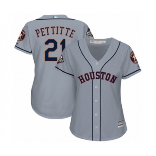 Women's Houston Astros #21 Andy Pettitte Authentic Grey Road Cool Base 2019 World Series Bound Baseball Jersey