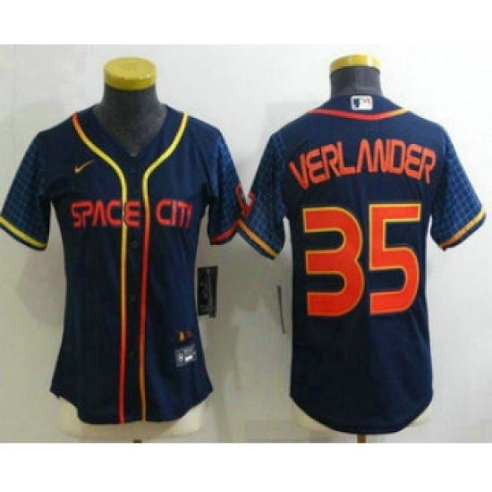 >Women's Houston Astros #35 Justin Verlander 2022 Navy Blue City Connect Cool Base Stitched Jersey