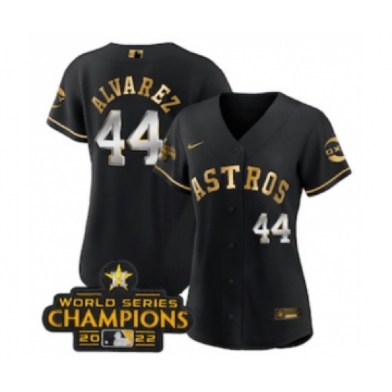 Women's Houston Astros #44 Yordan Alvarez Black Gold 2022 World Serise Champions Stitched Baseball Jersey