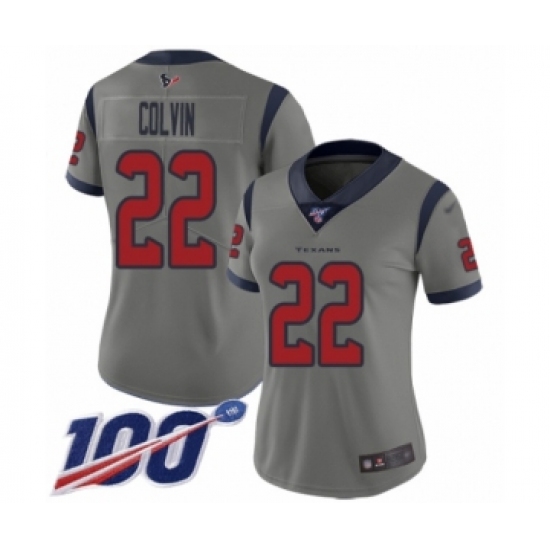 >Women's Houston Texans #22 Aaron Colvin Limited Gray Inverted Legend 100th Season Football Jersey