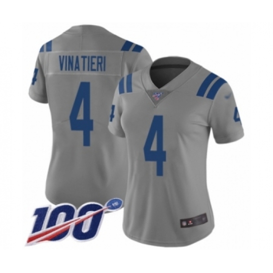 >Women's Indianapolis Colts #4 Adam Vinatieri Limited Gray Inverted Legend 100th Season Football Jersey