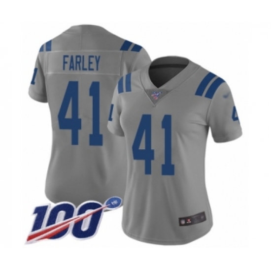 >Women's Indianapolis Colts #41 Matthias Farley Limited Gray Inverted Legend 100th Season Football Jersey