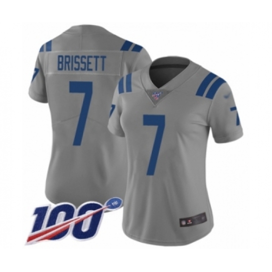 >Women's Indianapolis Colts #7 Jacoby Brissett Limited Gray Inverted Legend 100th Season Football Jersey