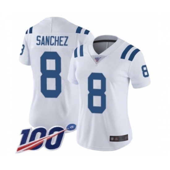 Women's Indianapolis Colts #8 Rigoberto Sanchez White Vapor Untouchable Limited Player 100th Season Football Jersey