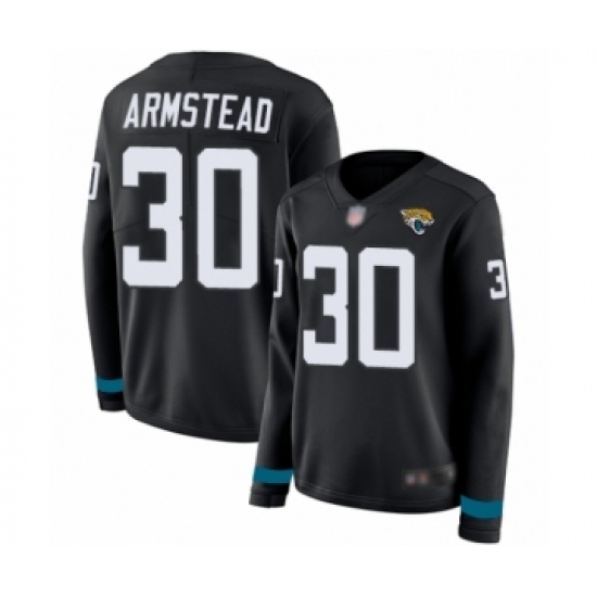 >Women's Jacksonville Jaguars #30 Ryquell Armstead Limited Black Therma Long Sleeve Football Jersey