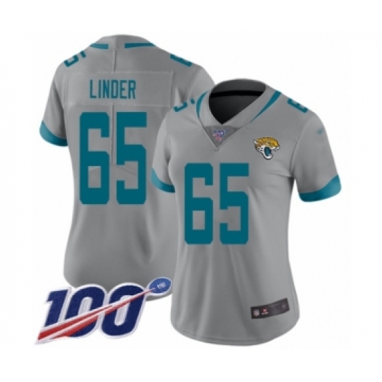 Women's Jacksonville Jaguars #65 Brandon Linder Silver Inverted Legend Limited 100th Season Football Jersey