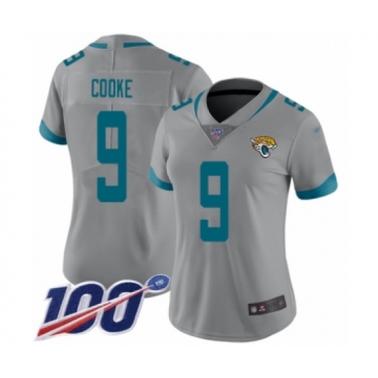 >Women's Jacksonville Jaguars #9 Logan Cooke Silver Inverted Legend Limited 100th Season Football Jersey