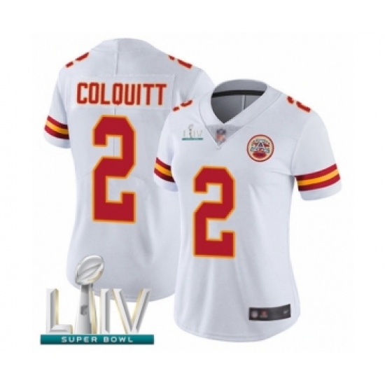 Women's Kansas City Chiefs #2 Dustin Colquitt White Vapor Untouchable Limited Player Super Bowl LIV Bound Football Jersey