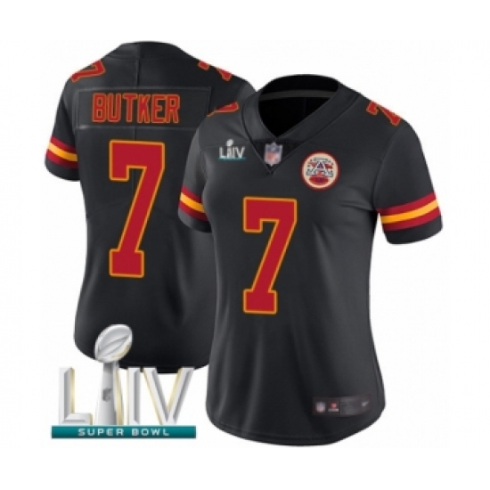 >Women's Kansas City Chiefs #7 Harrison Butker Limited Black Rush Vapor Untouchable Super Bowl LIV Bound Football Jersey