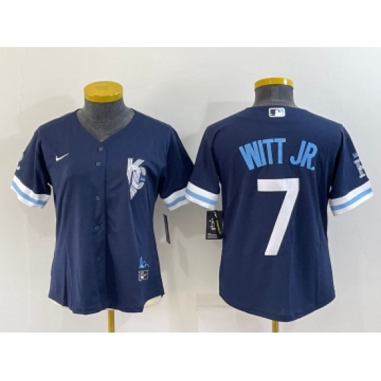 Women's Kansas City Royals #7 Bobby Witt Jr 2022 Navy Blue City Connect Cool Base Stitched Jersey