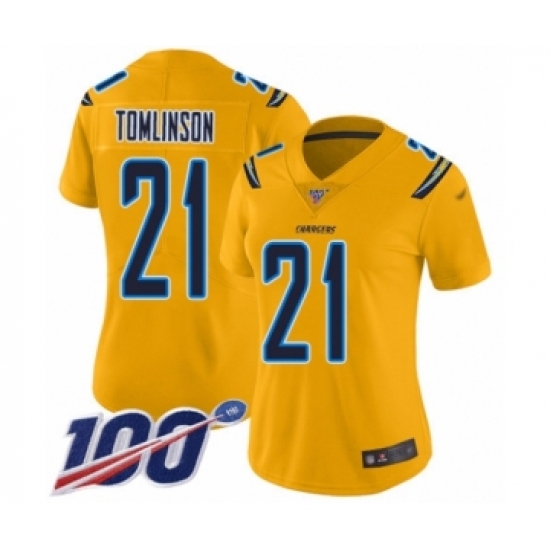 Women's Los Angeles Chargers #21 LaDainian Tomlinson Limited Gold Inverted Legend 100th Season Football Jersey