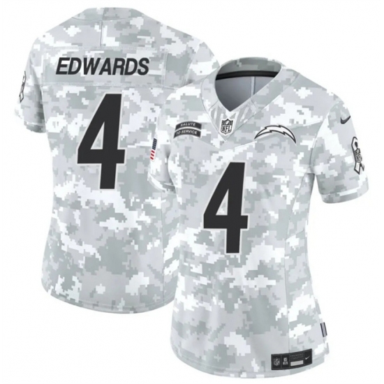 >Women's Los Angeles Chargers #4 Gus Edwards 2024 F.U.S.E Arctic Camo Salute To Service Limited Stitched Football Jersey(Run Small)