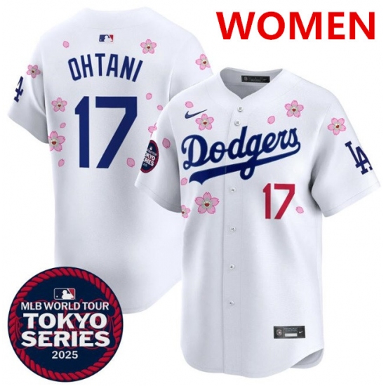 Women's Los Angeles Dodgers #17 Shohei Ohtani White 2025 Tokyo Series Limited Stitched Baseball Jersey(Run Small)