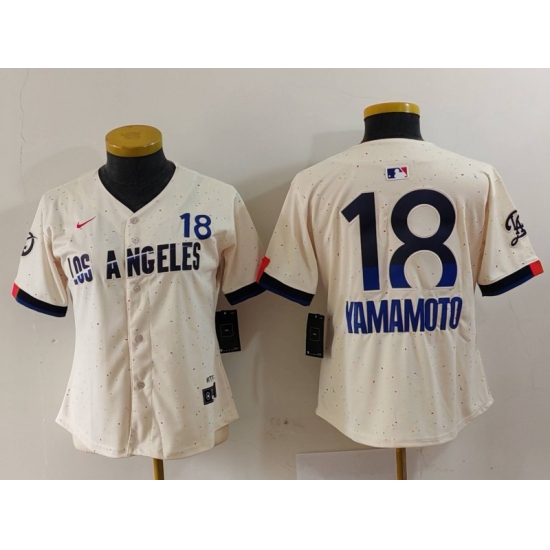 >Women's Los Angeles Dodgers #18 Yoshinobu Yamamoto Cream 2024 City Connect Limited Jersey