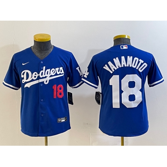 Women's Los Angeles Dodgers #18 Yoshinobu Yamamoto Number Blue Stitched Cool Base Nike Jersey