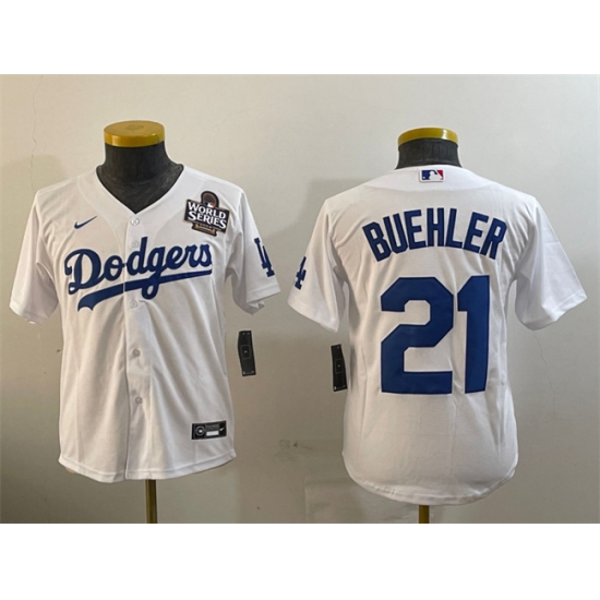 Youth Los Angeles Dodgers #21 Walker Buehler Number White Stitched Cool Base Nike Jersey