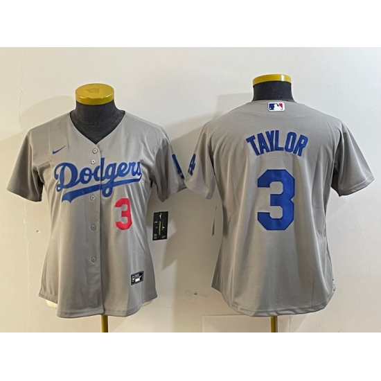 Women's Los Angeles Dodgers #3 Chris Taylor Number Grey Cool Base Stitched Nike Jersey