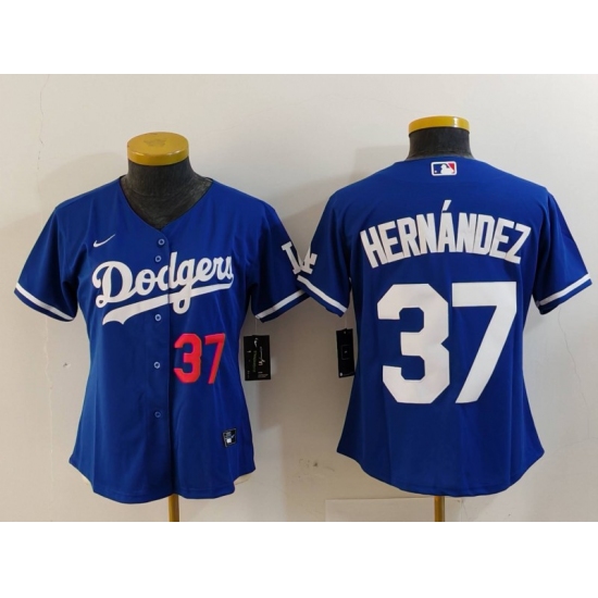 Women's Los Angeles Dodgers #37 Teoscar Hernandez Number Blue Cool Base Stitched Jersey