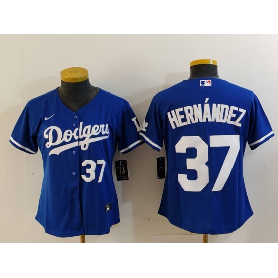 >Women's Los Angeles Dodgers #37 Teoscar Hernandez Number Blue Cool Base Stitched Jerseys