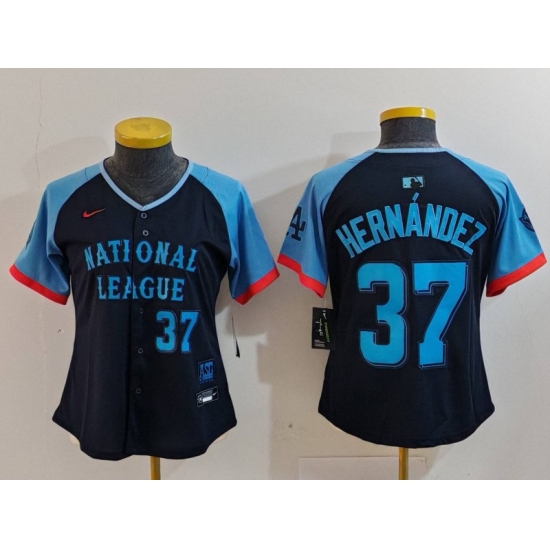 >Women's Los Angeles Dodgers #37 Teoscar Hernandez Number Navy 2024 All Star Limited Stitched Jersey