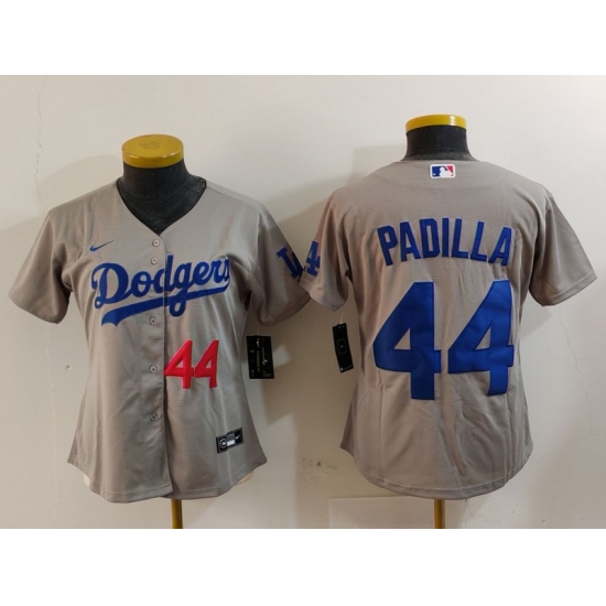 >Women's Los Angeles Dodgers #44 Vicente Padilla Number Grey Cool Base Stitched Jersey