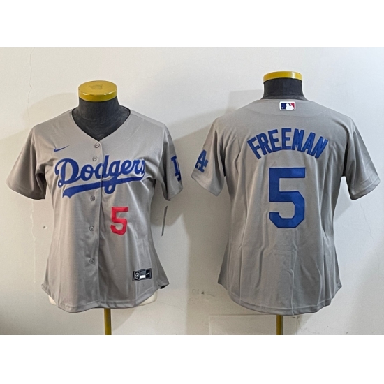 >Women's Los Angeles Dodgers #5 Freddie Freeman Number Grey Cool Base Stitched Jersey