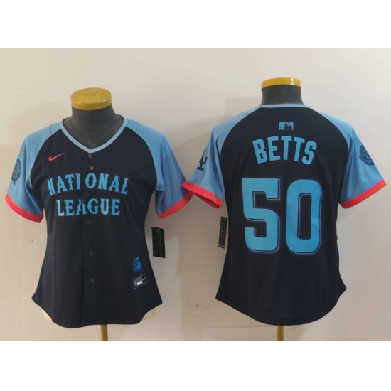 >Women's Los Angeles Dodgers #50 Mookie Betts Navy 2024 All Star Limited Stitched Jersey