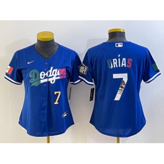 Women's Los Angeles Dodgers #7 Julio Urias Blue 2020 World Series Cool Base Nike Jersey4