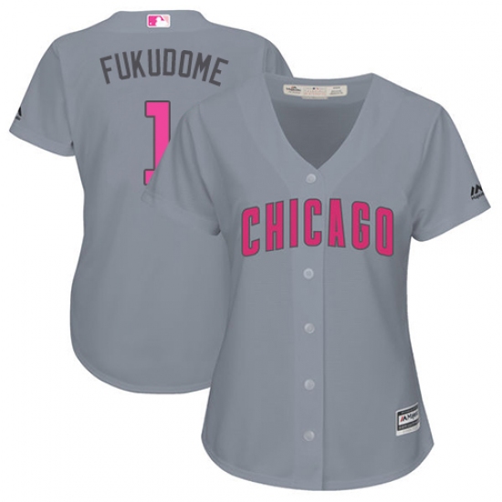 Home>MLB>Chicago Cubs>Kosuke Fukudome>Women's Majestic Chicago Cubs #1 Kosuke Fukudome Authentic Grey Mother's Day Cool Base MLB Jersey