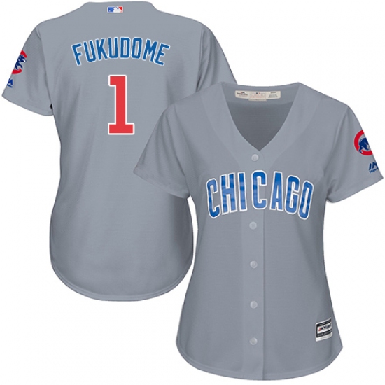 Home>MLB>Chicago Cubs>Kosuke Fukudome>Women's Majestic Chicago Cubs #1 Kosuke Fukudome Authentic Grey Road MLB Jersey