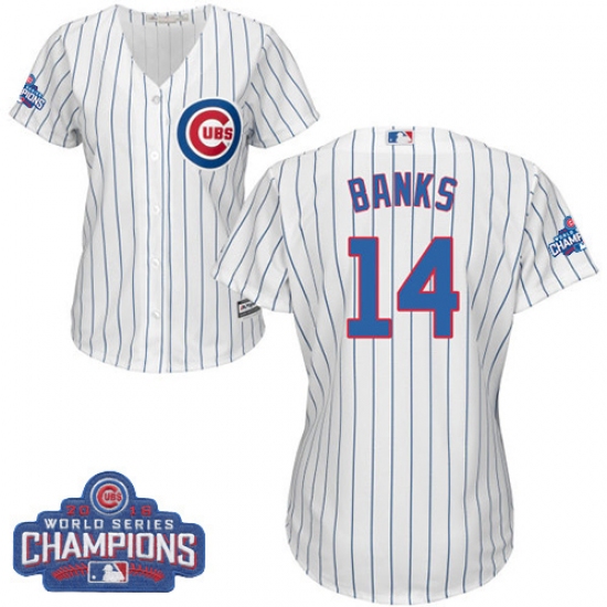 Women's Majestic Chicago Cubs #14 Ernie Banks Authentic White Home 2016 World Series Champions Cool Base MLB Jersey