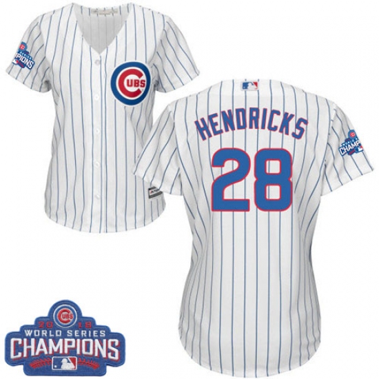 Women's Majestic Chicago Cubs #28 Kyle Hendricks Authentic White Home 2016 World Series Champions Cool Base MLB Jersey