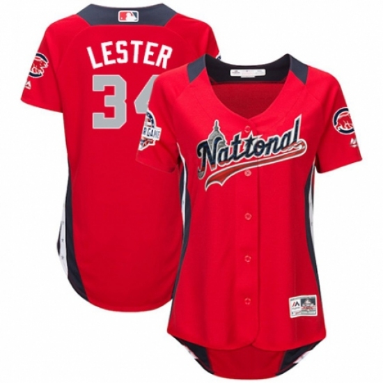 Women's Majestic Chicago Cubs #34 Jon Lester Game Red National League 2018 MLB All-Star MLB Jersey