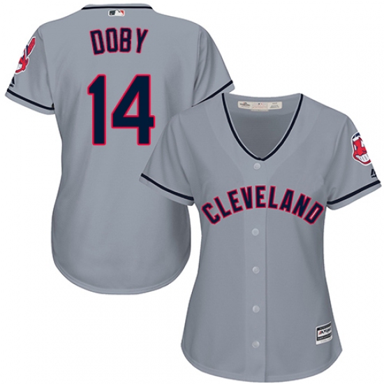 Home>MLB>Cleveland Indians>Larry Doby>Women's Majestic Cleveland Indians #14 Larry Doby Authentic Grey Road Cool Base MLB Jersey