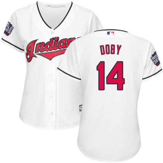 Home>MLB>Cleveland Indians>Larry Doby>Women's Majestic Cleveland Indians #14 Larry Doby Authentic White Home 2016 World Series Bound Cool Base MLB Jersey