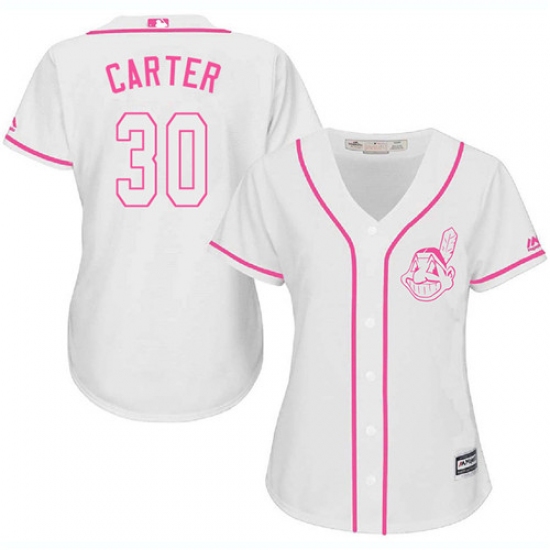 Women's Majestic Cleveland Indians #30 Joe Carter Authentic White Fashion Cool Base MLB Jersey