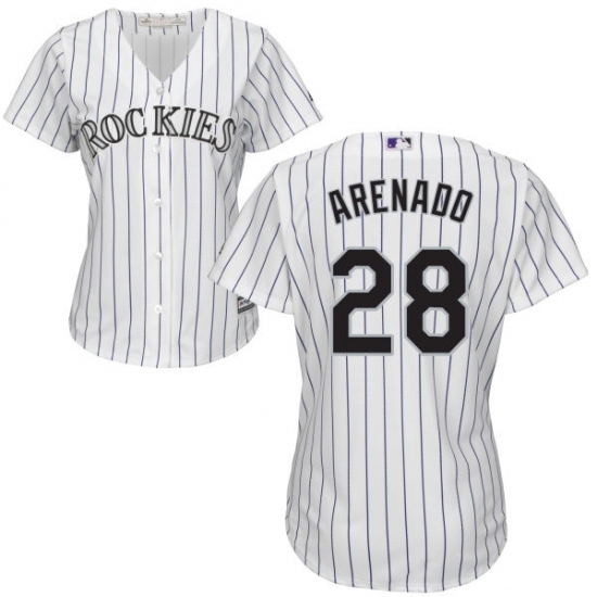 Home>MLB>Colorado Rockies>Nolan Arenado>Women's Majestic Colorado Rockies #28 Nolan Arenado Authentic White Home Cool Base MLB Jersey