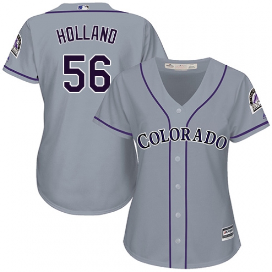 Home>MLB>Colorado Rockies>Greg Holland>Women's Majestic Colorado Rockies #56 Greg Holland Replica Grey Road Cool Base MLB Jersey