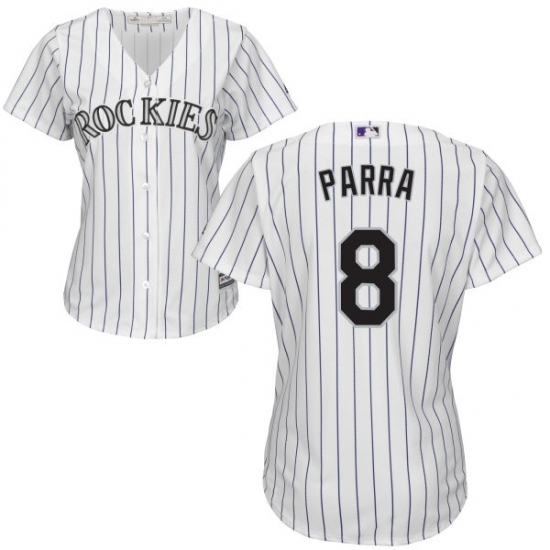 Home>MLB>Colorado Rockies>Gerardo Parra>Women's Majestic Colorado Rockies #8 Gerardo Parra Authentic White Home Cool Base MLB Jersey
