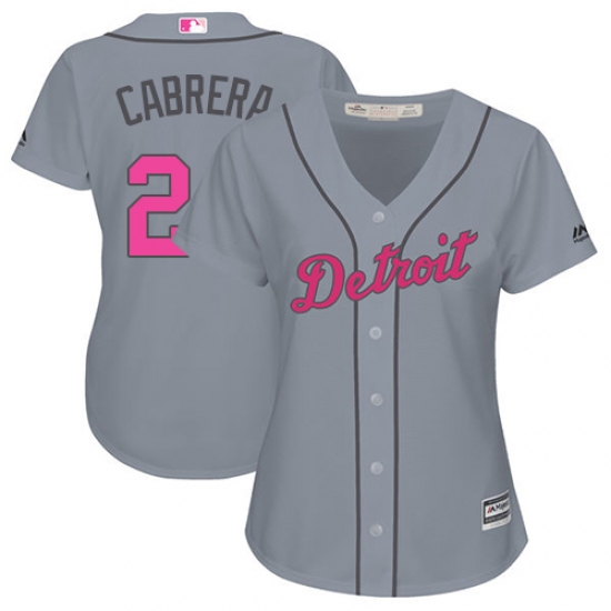 Home>MLB>Detroit Tigers>Miguel Cabrera>Women's Majestic Detroit Tigers #24 Miguel Cabrera Replica Grey Mother's Day Cool Base MLB Jersey