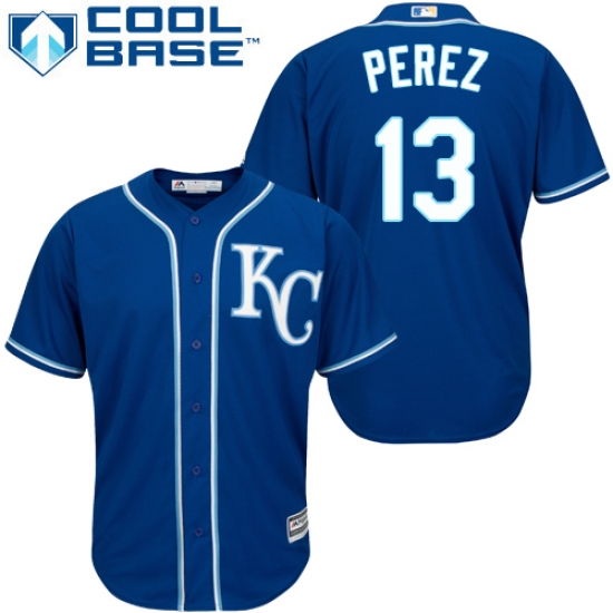Women's Majestic Kansas City Royals #13 Salvador Perez Replica Blue Alternate 2 Cool Base MLB Jersey