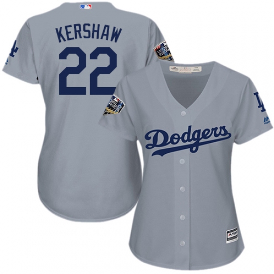 Women's Majestic Los Angeles Dodgers #22 Clayton Kershaw Authentic Grey 2018 World Series MLB Jersey