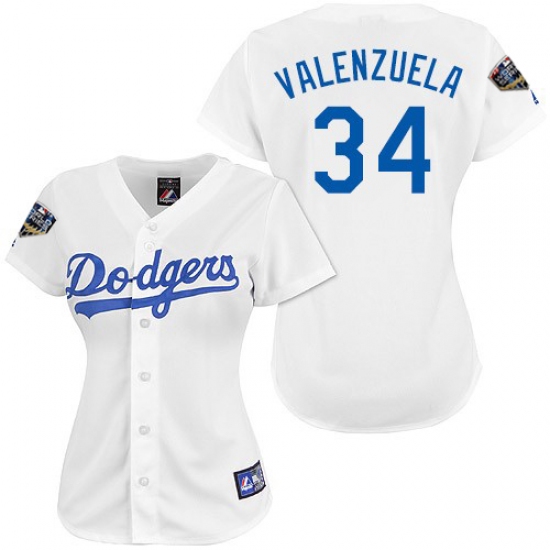 Women's Majestic Los Angeles Dodgers #34 Fernando Valenzuela Authentic White 2018 World Series MLB Jersey
