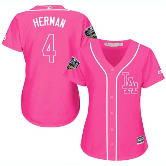Women's Majestic Los Angeles Dodgers #4 Babe Herman Authentic Pink Fashion Cool Base 2018 World Series MLB Jersey