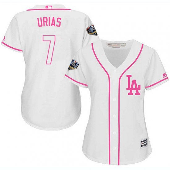 >Women's Majestic Los Angeles Dodgers #7 Julio Urias Authentic White Fashion Cool Base 2018 World Series MLB Jersey