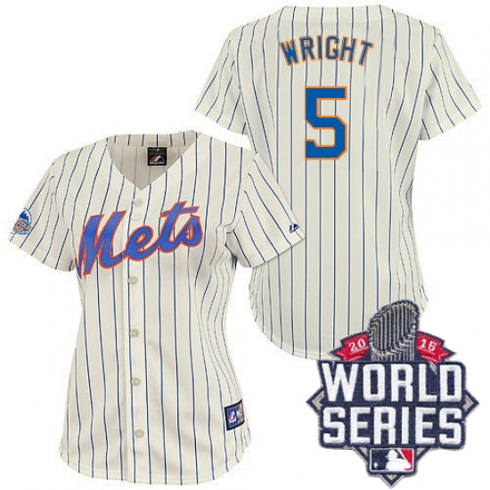 Women's Majestic New York Mets #5 David Wright Replica Cream/Blue Strip 2015 World Series MLB Jersey