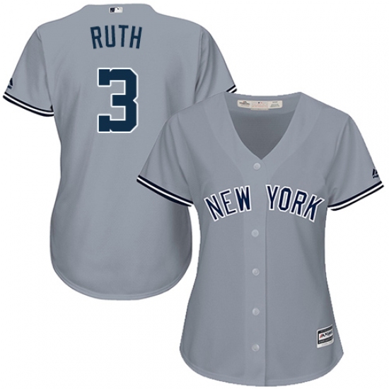 Women's Majestic New York Yankees #3 Babe Ruth Authentic Grey Road MLB Jersey