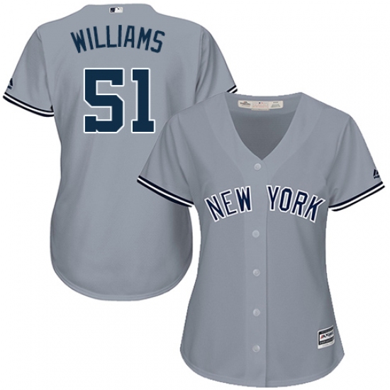 Home>MLB>New York Yankees>Bernie Williams>Women's Majestic New York Yankees #51 Bernie Williams Replica Grey Road MLB Jersey
