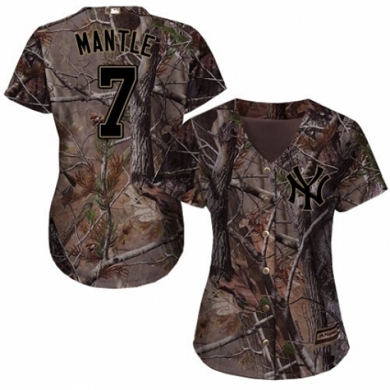 >Women's Majestic New York Yankees #7 Mickey Mantle Authentic Camo Realtree Collection Flex Base MLB Jersey